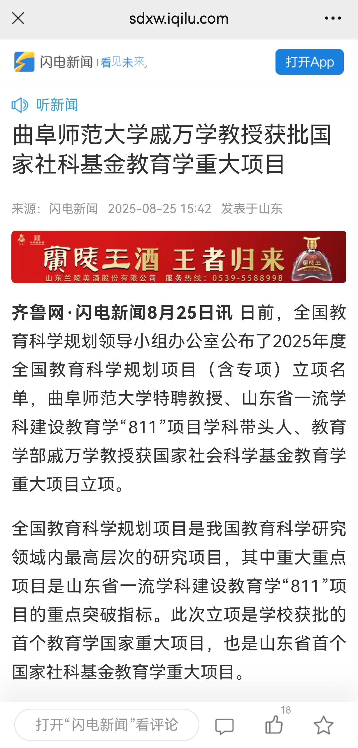 【闪电新闻】完美体育(中国)官方网站戚万学教授获批国家社科基金教育学重大项目