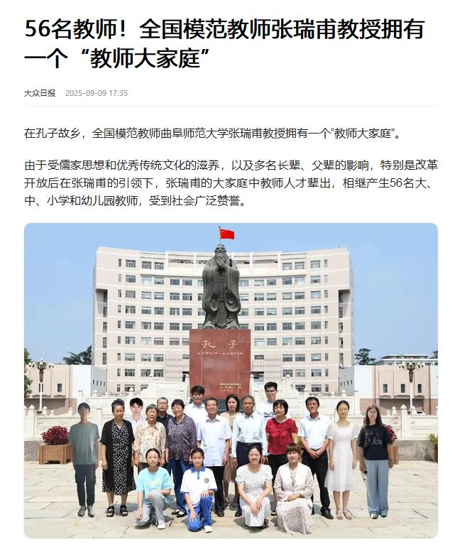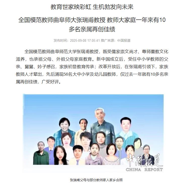 大众日报:56名教师!全国模范教师张瑞甫教授拥有一个“教师大家庭”