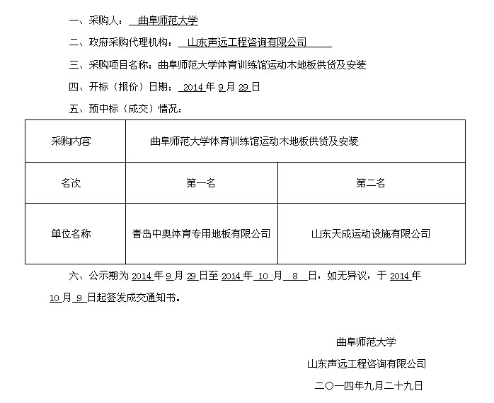 完美体育(中国)官方网站体育训练馆运动木地板供货及安装中标(成交)公告