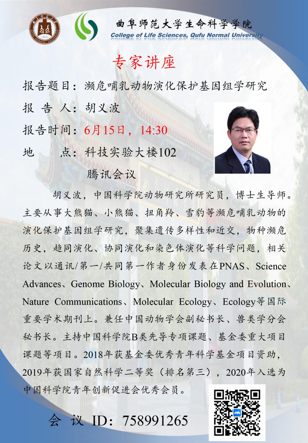 报告人:胡义波 研究员 中国科学院动物研究所