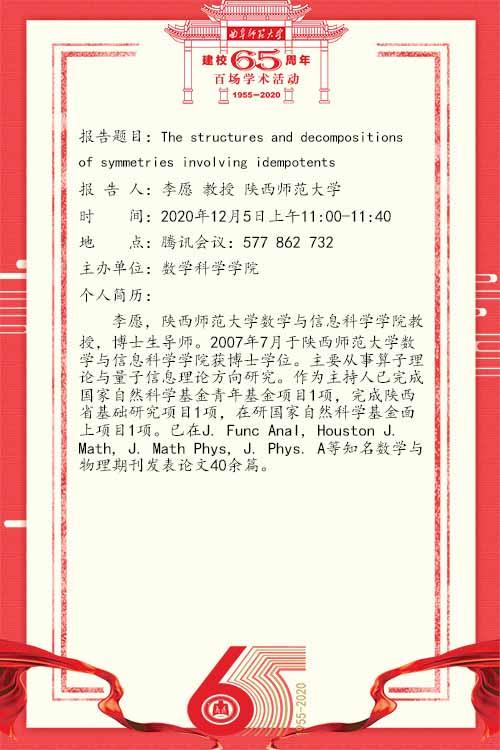 建校65周年校庆百场学术活动-陕西师范大学李愿教授
