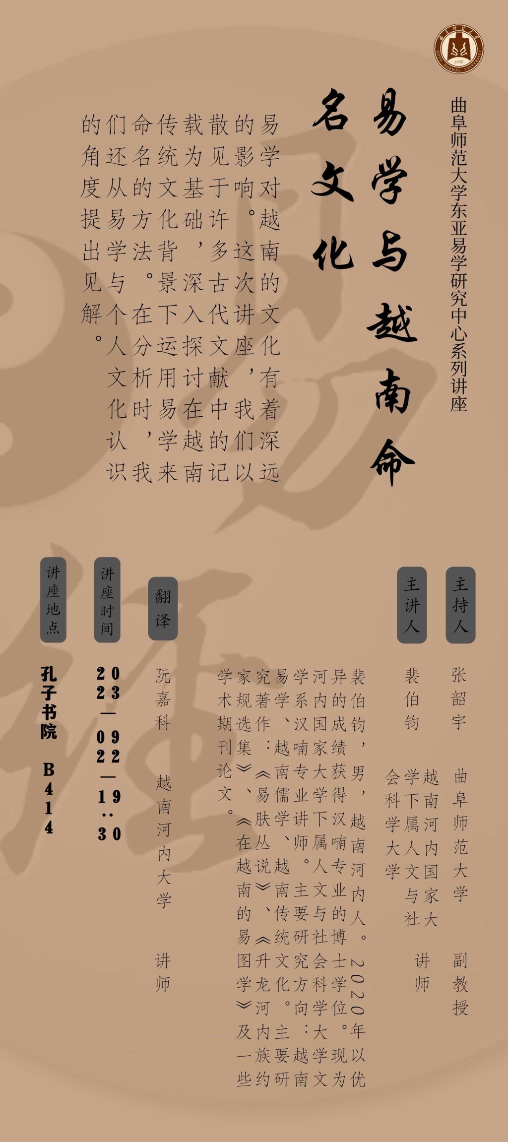 东亚易学研究中心系列讲座预告:易学与越南命名文化