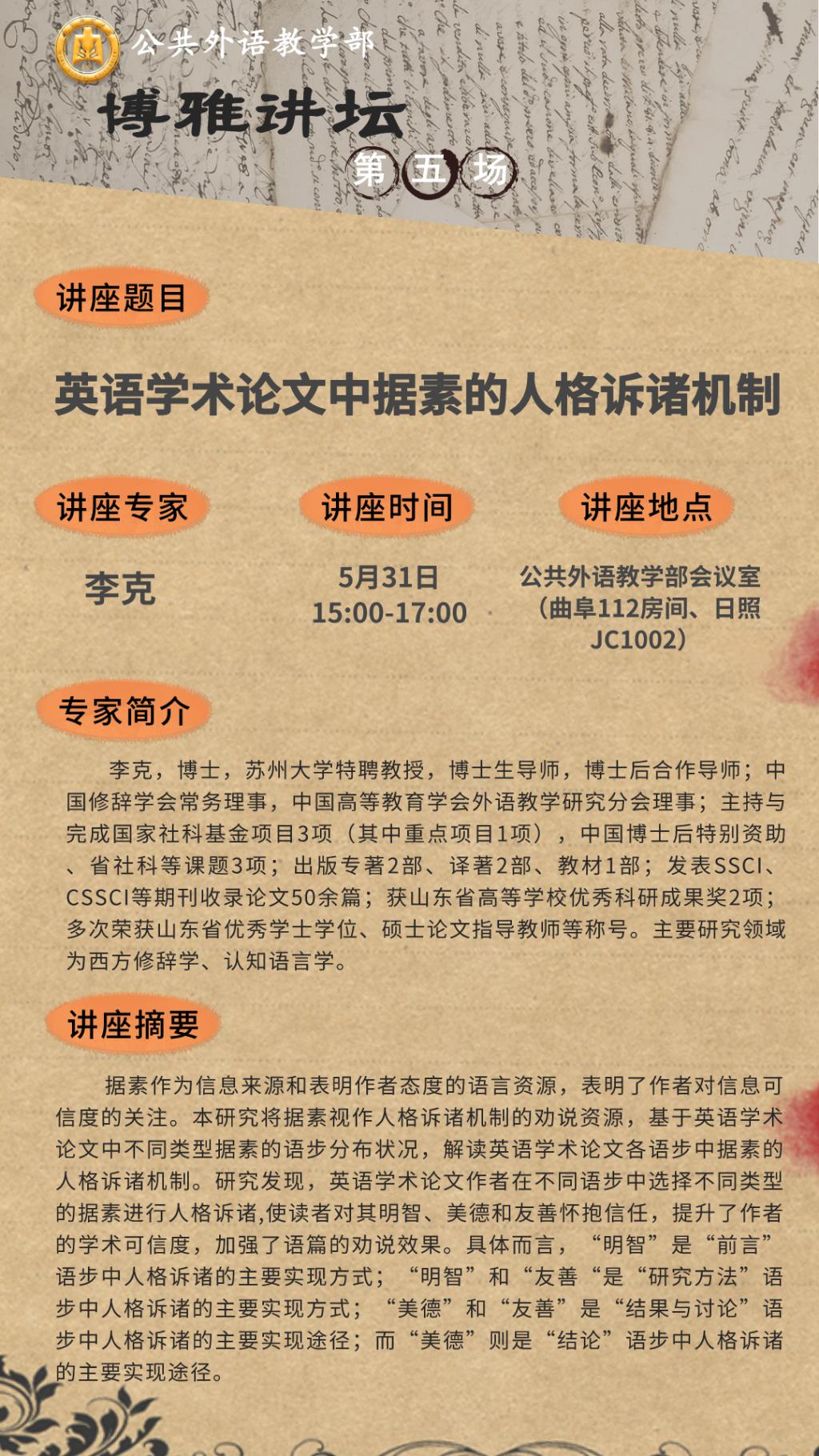 公共外语教学部博雅讲坛(五):英语学术论文中据素的人格诉诸机制