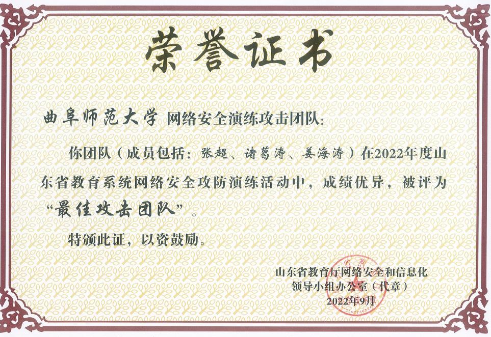 曲阜师大新闻中心讯 近日,山东省教育厅发文《关于表彰2022年教育系统网络安全攻防演练活动优秀攻击和防守队伍的通报》(鲁教网信办函〔2022〕26号),表彰了包括完美体育(中国)官方网站团队在内的10个优秀高校师生攻击团队。