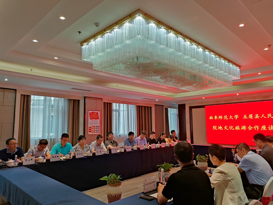 曲阜师大新闻中心讯(通讯员:吴军  张瑜 刘志刚) 日前,为进一步加强校地合作,助推文旅产业高质量发展,曲阜师大地理与旅游学院党委书记苏占兵、院长张全景率领学院领导班子成员和各系主任一行12人,赴五莲县开展实地调研。五莲县委常委、统战部部长、县政协党组副书记卢绪龙,县委常委、副县长徐哲,县文化和旅游局局长周佳琴,农业农村局局长徐桂亮,自然资源和规划局副局长邱立友,良友喜事会酒店总经理郭长征等参加了座谈会。