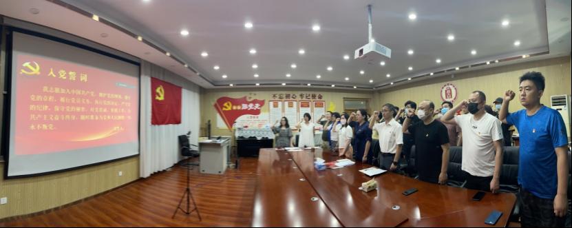 随后,由佀黎明带领全体师生党员,面向党旗庄严宣誓。全体党员集体观看人民网“红色云展厅”线上平台的红色展馆部分内容,通过“红色云展厅”线上学习,进一步引导师生党员传承红色基因,弘扬伟大建党精神。大家纷纷表示,要牢记在党旗下的铮铮誓言,一心爱党、一生为党,赓续红色血脉,担当历史使命,用实际行动为鲜红的党旗增光添彩,永葆一颗向党红心,真正做到与党同心同德、同向同行。