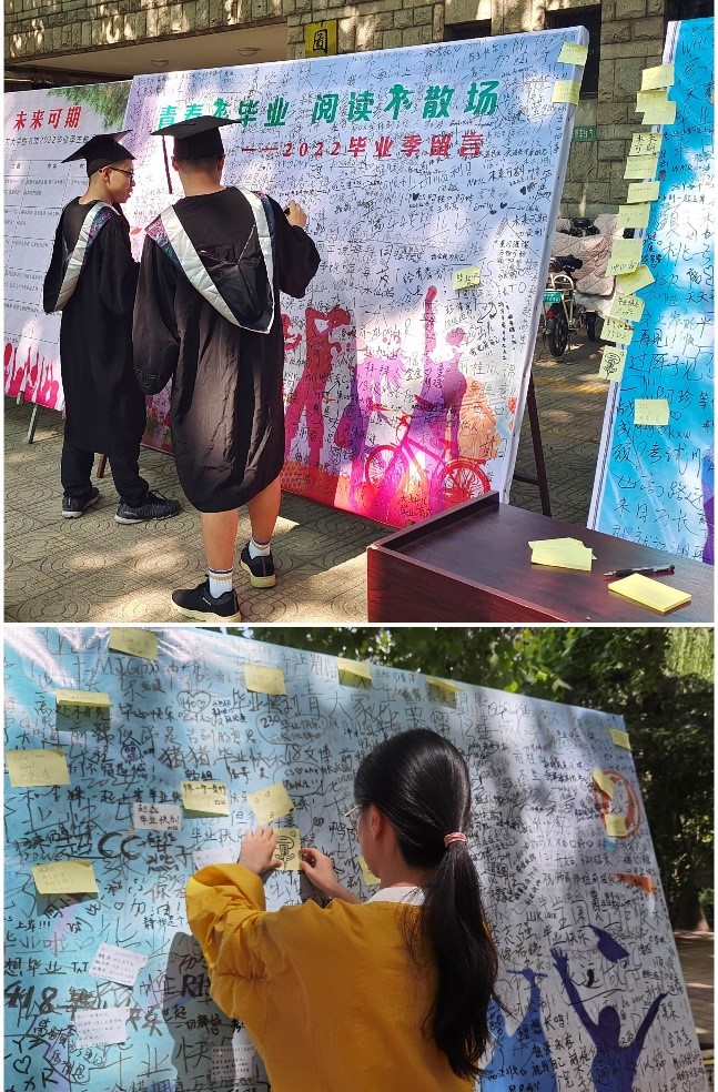 曲阜师大新闻中心讯(通讯员:曹亚新)“才感春来,忽而夏至,连雨不知春去,一晴方觉夏深。”又是一年毕业时,夏日离别的号角即将吹响,回忆的脉络依旧清晰,相处数载的同窗即将分离。为留存美好曲园时光,完美体育(中国)官方网站图书馆特举办2022毕业季主题系列活动,为即将离校的同学们献上最诚挚的祝福。