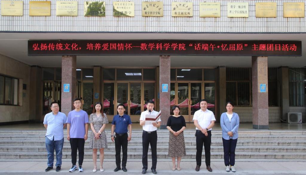 曲阜师大新闻中心讯(通讯员:吕瑞源 韦宁 摄影:田青雨)粽香四溢,百舟竞渡,又是一年端午到。为进一步丰富校园精神文化生活,营造浓厚节日氛围,让师生深切感受中华传统节日的文化魅力。在端午节来临之际,数学科学学院举办弘扬传统文化,培养爱国情怀“话端午,忆屈原”主题活动。校团委相关负责人、数学科学学院班子成员及20级、21级学生辅导员参加本次活动。