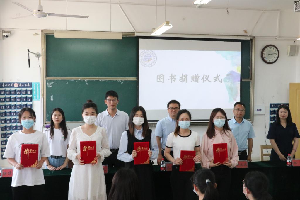 仪式上,毕业生代表邓文静代表学院全体毕业生向学校捐赠图书,孔轶众代表学校接受捐赠,出席仪式的老师共同为捐赠教材的毕业生代表颁发了荣誉证书。