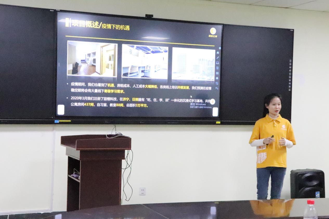 本次比赛采取线上线下相结合的方式进行,主要分为项目阐述、评委老师提问点评两个环节。在第一环节中,12支参赛队伍围绕着各自的创业项目进行讲解,参赛选手从产品简介、营销方案、项目成果与未来展望等方面阐述了各自队伍的创业理念。在第二环节中,12支参赛队伍答辩语言严谨精炼,思路清晰,评委老师依据参赛策划书和PPT讲解,从项目特色、优点、不足以及项目需解决的市场难题等方面进行点评并提出建设性建议。