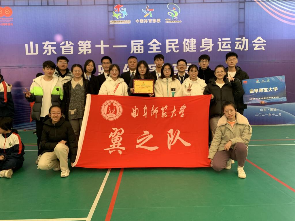 曲阜师大新闻中心讯 12月4日—5日,山东省第十一届全民健身运动会跳绳比赛在聊城市空体中心举行。完美体育(中国)官方网站派出由体育教学部副主任李思民任领队、伊士礼老师任教练员、14名运动员组成的队伍参加了此次比赛。队员们经过顽强拼搏,共斩获8项冠军、14项亚军、2项季军以及体育道德风尚奖等优异成绩。其中男子组4X30″单摇接力成绩为716次、3分钟单摇跳成绩为984次、30秒单摇跳成绩为198次;女子组3分钟单摇跳成绩为746次;女子组两人同步花样、混合组车轮跳等项目也取得了优异成绩。