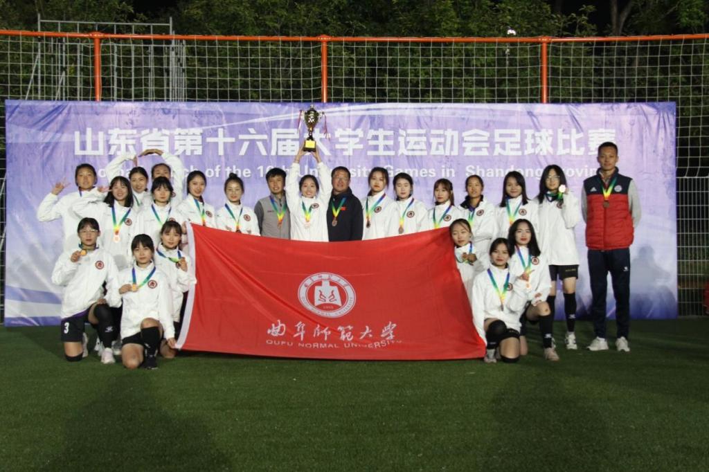 曲阜师大新闻中心讯 10月14日至10月21日,由山东省教育厅、体育局主办的省第十六届大学生运动会足球比赛在潍坊鲁能足球学校举行,本届比赛共设甲、乙、丙三个组别,来自全省各高校53支队伍共1000余人参加了各组别的比赛。经过7天紧张激烈的角逐,我校女足斩获女子甲组(本科普通组)季军,创造了曲阜师大在山东省大学生运动会足球比赛女子甲组项目中的历史最好成绩。
