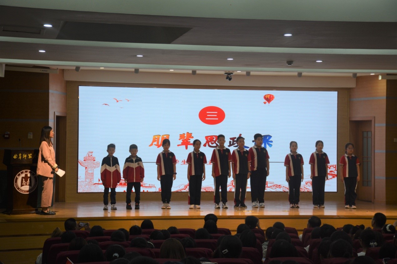 曲阜师大新闻中心讯 9月29日晚,文学院 “建党百年,青年担当”——2021级新生思政大课堂在孔子会堂开讲。文学院党委书记左兴才、党委副书记曲媛媛、团委书记张乾坤、新生辅导员杨景添、高原以及2021级全体同学参加了本次活动。