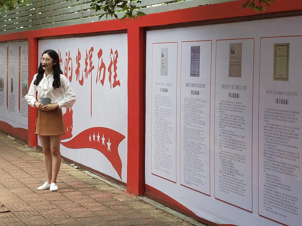 忆往昔峥嵘岁月,展未来任重道远。外国语学院结合专业特点,打造特色党史文化展,献礼党的百年华诞。党史展览分为“党的光辉历程”和“中国共产党人的精神谱系”两个板块,以百年党史重要历史事件为主线,以真实直观的图片、简洁有力的文字,展现了中国共产党由小变大,由弱变强,团结带领中国人民夺取革命、建设、改革的一个又一个伟大胜利的辉煌篇章。大家跟随讲解员的脚步,一起重温中国共产党的百年历史,回顾惊涛骇浪中,伟大的中国共产党人执掌航舵、带领中国人民顽强奋斗的光辉历史。