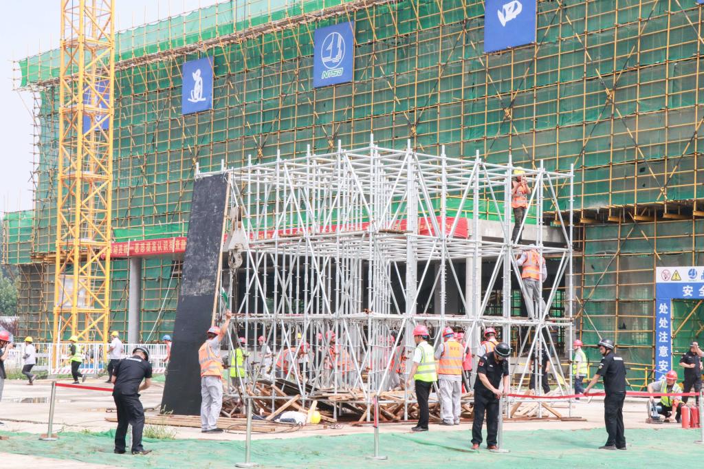 曲阜师大新闻中心讯   为进一步落实安全生产部署,提升项目风险防范和事故灾害应急处置能力,6月18日上午,曲阜师大曲阜校区扩建项目举行防汛、模板坍塌防汛救援演练。曲阜市副市长高铂出席演练观摩会,曲阜师大基建处、曲阜市住建局、济宁城投控股集团有限公司等部门和单位相关负责人参加演练活动。