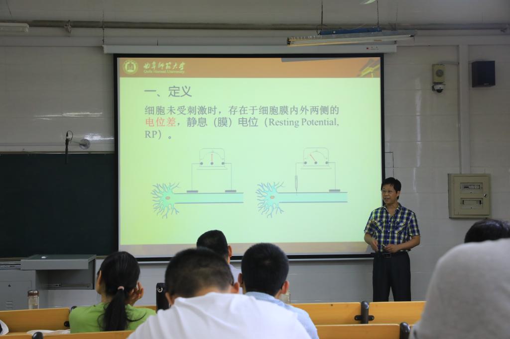 随后,徐金会老师、刘柏玲老师和甘延东老师分别为大家带来“课程思政”示范课展示。徐金会老师讲授“静息电位及产生机制”、刘柏玲老师讲授“开花和传粉”、甘延东老师讲授“热力学第一定律”。现场气氛热烈,台上台下互动交流,老师纷纷感慨收获良多,意犹未尽。