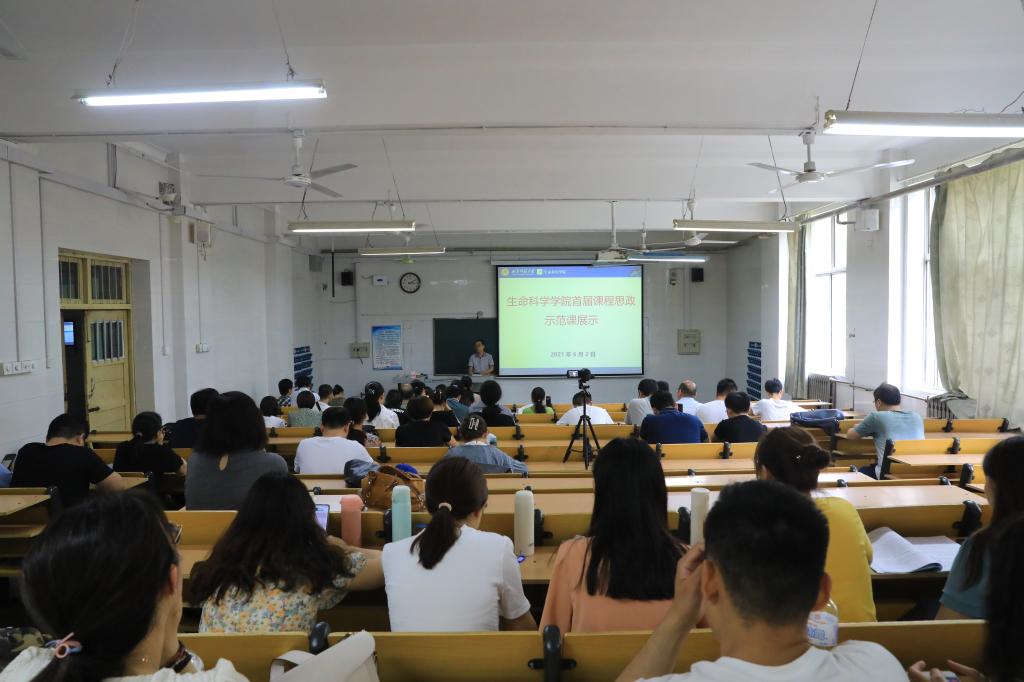 曲阜师大新闻中心讯(通讯员:刘彦彦) 为深入学习习近平总书记在全国高校思想政治工作会议和全国教育工作会议上的重要讲话精神,全面贯彻落实教育部《高等学校课程思政建设指导纲要》,把思想政治工作贯穿教育教学全过程,进一步推进“课程思政”教学改革,充分发挥课堂教学的育人渠道作用,6月2日下午,生命科学学院举办首届“课程思政”示范课展示活动。学院党委书记李志广、副院长王仁君、院长助理燕艳、首届“课程思政”示范课展示教师以及学院全体专任教师参加了活动。活动由副院长王仁君主持。