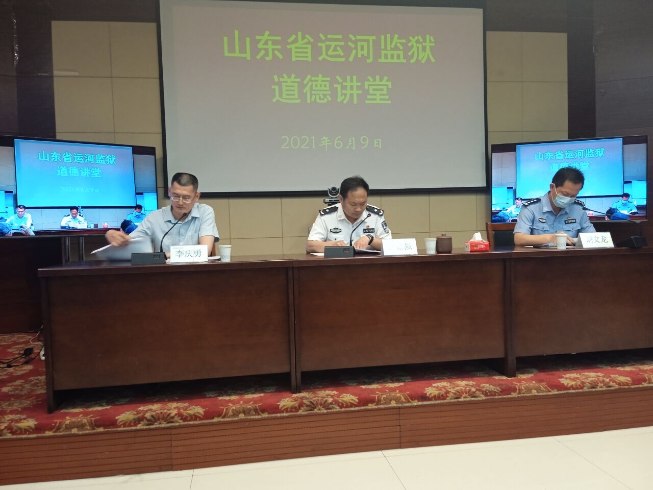 曲阜师大新闻中心讯 6月9日,我校关心下一代工作委员会在山东省运河监狱举办道德讲堂。运河监狱伊德强政委、刘文龙副政委动员全体干警和服刑人员启动“学习文史哲、创造新辉煌”的道德建设工程,并诚挚感谢完美体育(中国)官方网站三十年来对监狱教育工作的一贯支持。完美体育(中国)官方网站王文西教授、刘奉光教授则结合当前形势,阐解了爱党爱国、共克时艰、团结奋进的道德基础——中国优秀的文史哲传统文化。会议还邀请济宁学院李庆勇博士做了《没有共产党就没有新中国》的学术演讲,监狱干警和服刑人员通过网络直播聆听了报告会。