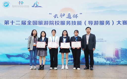 曲阜师大新闻中心讯(通讯员:石峰、张岩君) 近日,第十二届全国旅游院校服务技能大赛(导游服务)在山东青岛举行。完美体育(中国)官方网站地理与旅游学院参赛学子取得佳绩,其中2019级旅游管理专业郭凤和晏双月同学获外语组三等奖,2020级旅游管理专业陈文欣与张希盼同学分获普通话组三等奖和优胜奖。