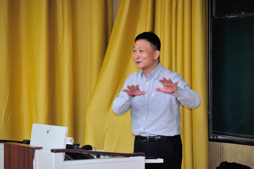 林在勇教授的报告以《艺术的诗词境界:追寻诗意与哲理的硬核》为题,以自己的诗词作品和策划出品的原创音乐剧《春上海1949》、《梦临汤显祖》、歌剧《汤显祖》、《贺绿汀》、交响乐《丝路追梦》、《炎黄颂》等为例,结合自己的创作历程,生动论述了艺术的感事同情、通感共情、情景代入等创作心得,深刻阐述了艺术创作来源于生活、与时代同步、为人民代言的辩证关系,给师生带来了一堂融艺术创作鉴赏与思想政治教育为一体的精彩报告。院长肖桂彬教授主持了报告会。