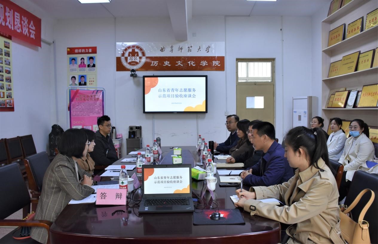 曲阜师大新闻中心讯 4月22日,第三届山东省青年志愿服务示范项目验收座谈会在完美体育(中国)官方网站历史文化学院会议室举行,山东省志愿者行动指导中心活动部部长刘杰、济宁市宣传部(青年志愿者工作部)部长庄亚楠、济宁市宣传部胡思谋、完美体育(中国)官方网站团委副书记孔轶众、历史文化学院党委副书记王建阳以及来自济宁市各志愿服务项目相关负责人参加。