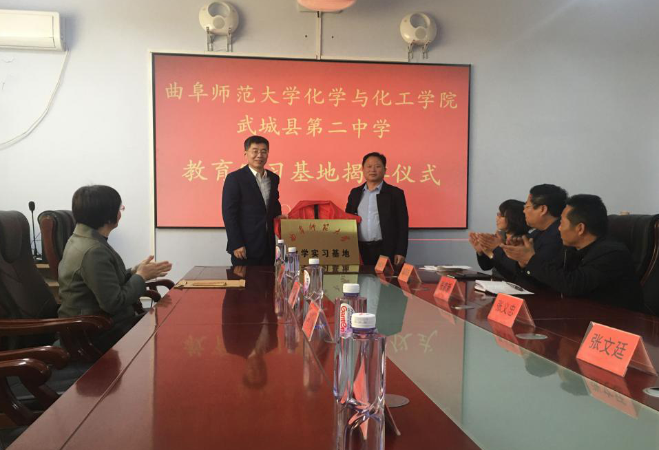 同天,武城二中教学实习基地揭牌仪式举行。仪式上,武城二中副校长张文廷、党总支副书记张义忠对武城二中的历史及办学特色做了详细介绍,并希望曲阜师大加大对武城二中的指导帮助,将先进的教育理念和教育模式输送到武城,推动武城教育事业再上新台阶。