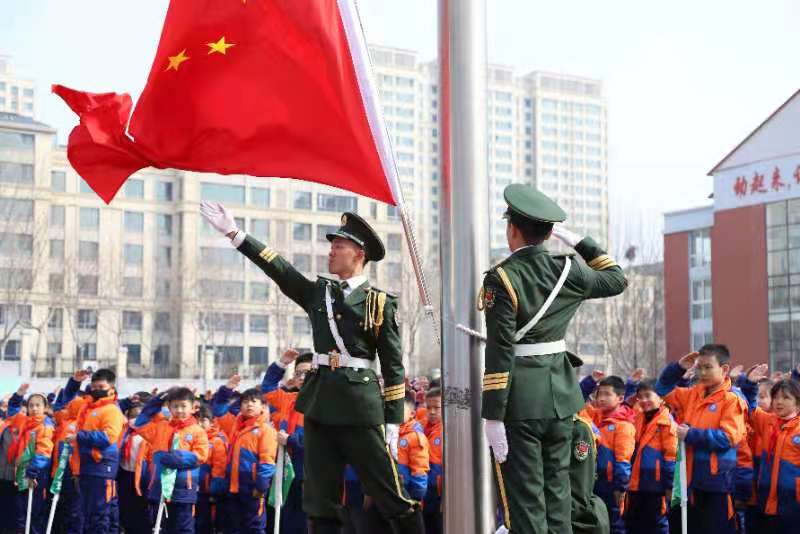 完美体育(中国)官方网站国旗护卫队24名团员青年为金海岸小学4800名少先队员和全体教师举行升旗仪式。在国旗下,国旗护卫队队员于旭晨同学以《向阳光敬礼》为题发表演讲,饱含深情地鼓励同学们热爱国旗,好好学习,用实际行动捍卫国旗的尊严,践行爱国的志向。