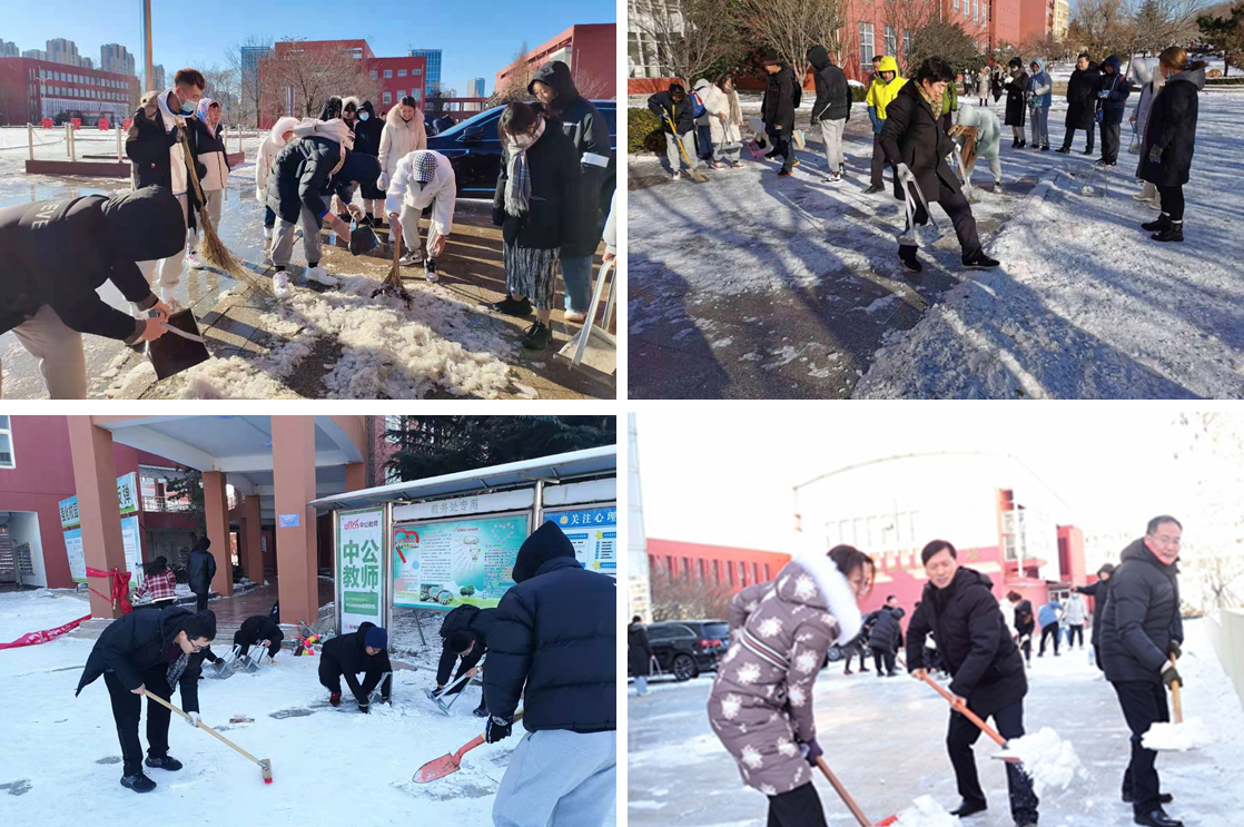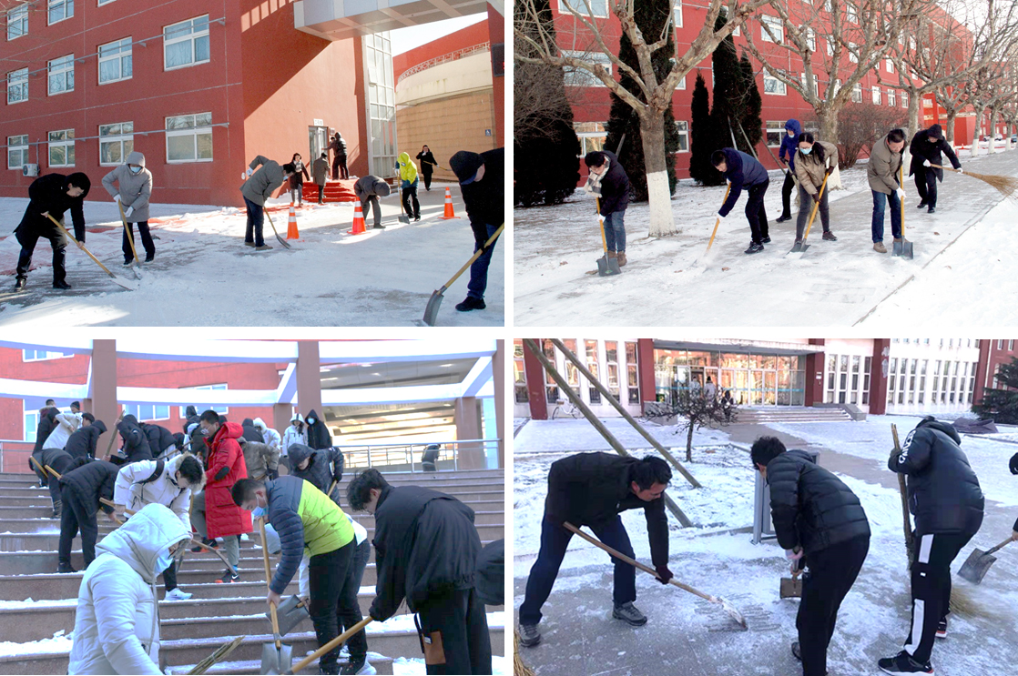 在零下10℃的严寒中,冬风凛冽,积雪厚重,冰层坚硬,但广大师生干劲十足,铁锹扫帚齐上阵,铲车轰鸣显神通,给冬日的曲园增添了一份暖人的温度。经过几个小时的努力,扫雪任务圆满完成,师生们的劳动热情并未退却,团结合作的力量彰显了曲园的风采。