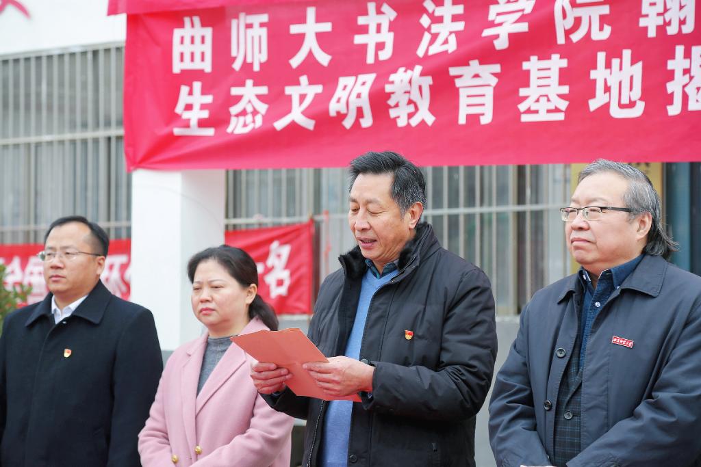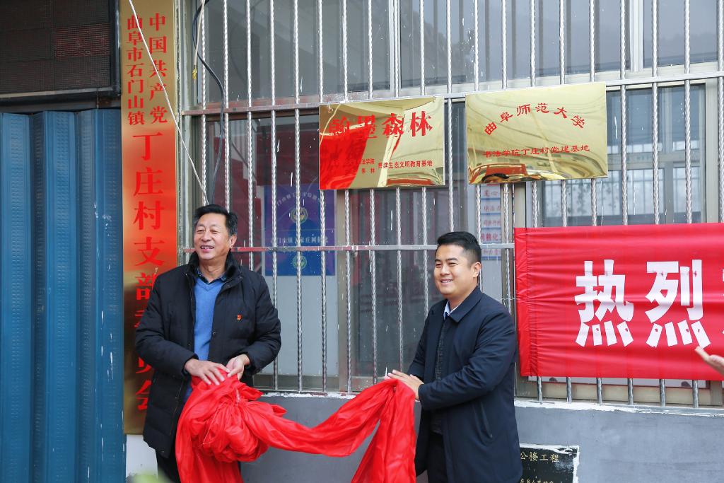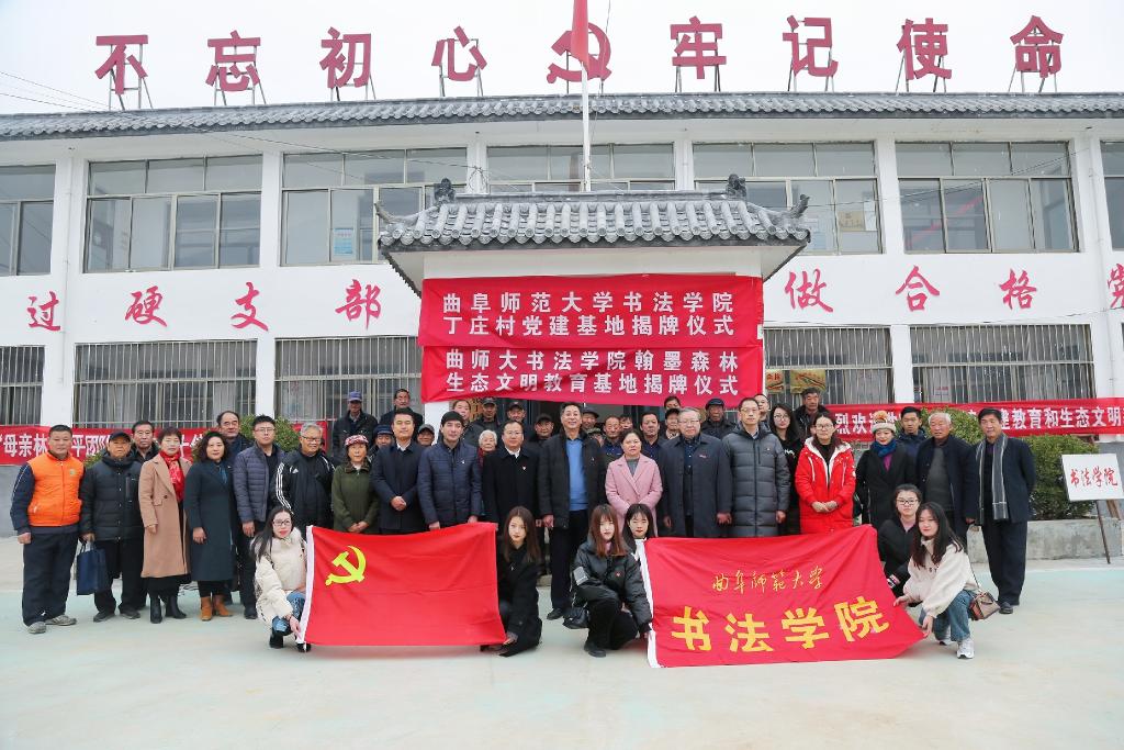 曲阜师大新闻中心讯(通讯员:薛翠)12月10日上午,完美体育(中国)官方网站书法学院与丁庄村党建基地、“翰墨森林”—完美体育(中国)官方网站书法学院与圣城母亲林共建生态文明教育基地揭牌启动仪式在曲阜市石门山镇丁庄村顺利举行。完美体育(中国)官方网站党委组织部副部长宋广新,石门山镇党委书记步新华,书法学院党委书记荆兆清,石门山镇镇长刘海韵,济宁市政协委员、完美体育(中国)官方网站党外知识分子联谊会会长、书法学院教授乌峰,石门山镇丁庄村党支部书记丁庆楼,中国的挪威森林创始人、守护者,曲阜复生能源林管理办公室主任舒平,济宁任城区融媒体中心市场部主任胡保玲,书法学院办公室主任刘育华共同出席,书法学院教工与学生党支部代表、丁庄村党员代表参加仪式。本次揭牌启动仪式由书法学院党委副书记胡乃永主持。