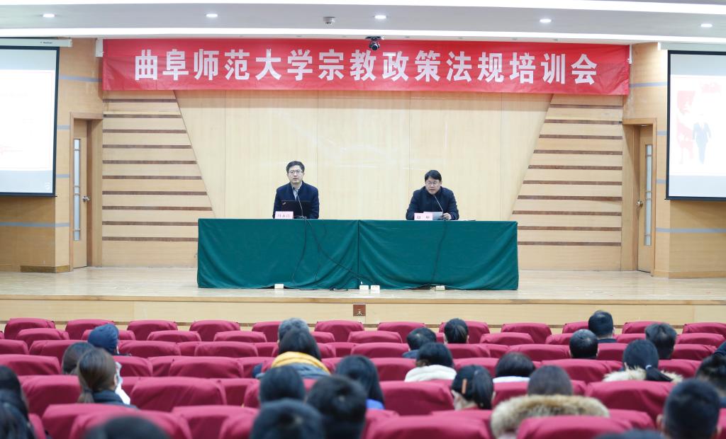 曲阜师大新闻中心讯(通讯员:李毅 摄影:刘萌 王超)为深入贯彻落实党的宗教工作方针政策、落实山东省委教育工委24号文件精神,落实学校宗教工作部署,提升新形势下我校宗教工作的法治化水平,12月2日—3日,完美体育(中国)官方网站在曲阜和日照两个校区分别召开了“宗教政策法规培训会”,邀请民族宗教研究与教学领域专家、山东省社会主义学院冯永昌副教授做了《学习习近平总书记关于宗教工作的重要论述做好新时代高校宗教工作》的报告。各二级单位党委(总支)书记、统战联络员、全体本科生、研究生辅导员、近两年新入职教师、学团、保卫等部门工作人员参加了这次培训。