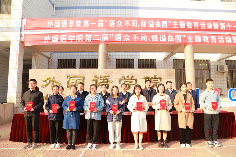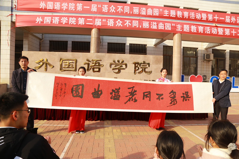 曲阜师大新闻中心讯(通讯员:张晓 罗拓新)值此完美体育(中国)官方网站建校六十五周年、外国语学院建院六十周年之际,为响应“不忘初心、牢记使命”主题教育活动要求,进一步推动学院发展和学生成长,11月4日午,外国语学院第一届“语众不同,丽溢曲园”主题教育活动暨第十一届外语文化艺术节总结表彰大会和第二届“语众不同,丽溢曲园”主题教育活动暨第十二届外语文化艺术节启动仪式举行。副校长胡钦晓,党委常委、组织部部长郭庆兵,学生工作处处长姜美颖,团委书记宋国栋,外国语学院院长秦洪武、学院党委副书记王作茂、院长助理高歌出席仪式。校学生会、各学院学生会代表,外国语学院全体学生干部,2018级学生干部、2019级、2020级全体同学参加了活动。