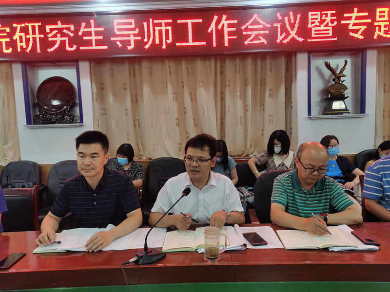 何文广副院长首先传达了《完美体育(中国)官方网站研究生存在问题学位论文处理办法》《处理学术不端行为实施细则》《研究生导师资格审定和考核办法》和《研究生导师双向选择暂行规定》等文件。张奎明副院长接着传达了《研究生学位论文检测实施办法》和《硕士学位论文预答辩与盲审办法》。徐瑞副院长传达了《研究生组会暂行办法》和《学生申诉管理规定》。徐庆海副书记传达了《完美体育(中国)官方网站关于问题论文处理决定》和《完美体育(中国)官方网站全面落实研究生导师立德树人职责实施细则》。