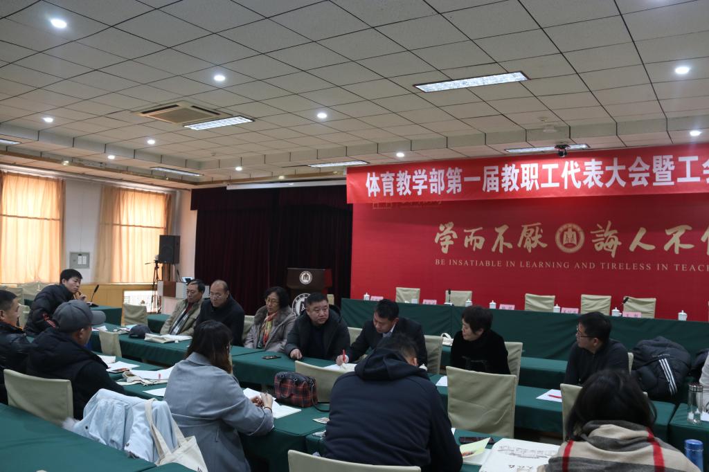 1月3日,为了充分调动广大教职工参与民主管理和监督的积极性,体育教学部两校区教职工齐聚一堂,召开了完美体育(中国)官方网站体育教学部第一届教职工代表大会暨工会会员代表大会。党委常委、副校长胡钦晓教授出席大会,校工会副主席孙岩,体育教学部主任杨弢教授、体育教学部副主任姜付高教授、体育教学部副主任李兆进副教授、体育教学部日照校区工会主席王哲和体育教学部曲阜校区工会主席宋琳琳等相关领导以及39名教职工和工会会员代表参加了会议。