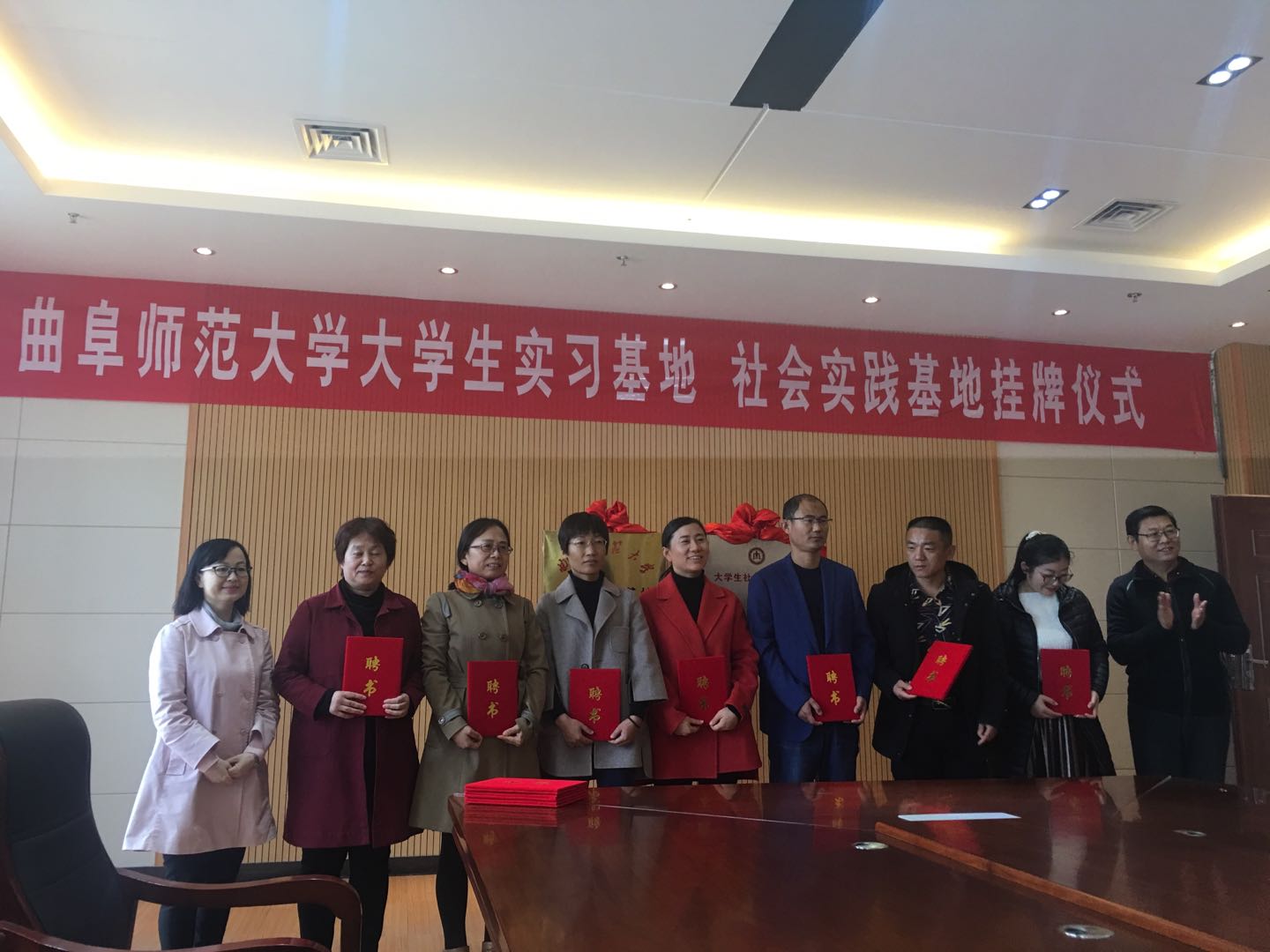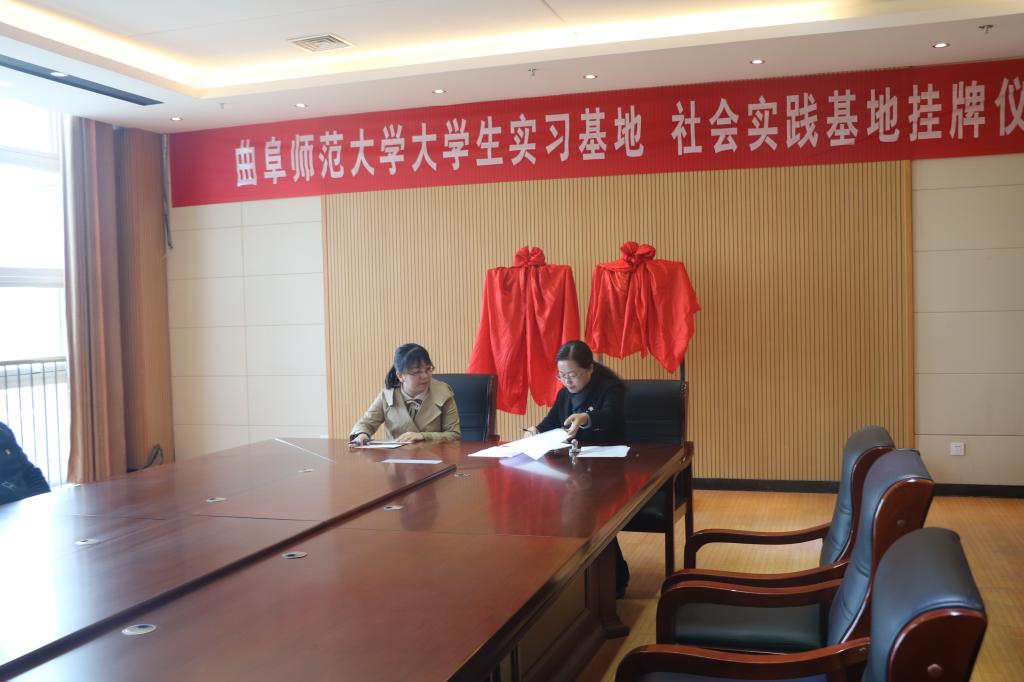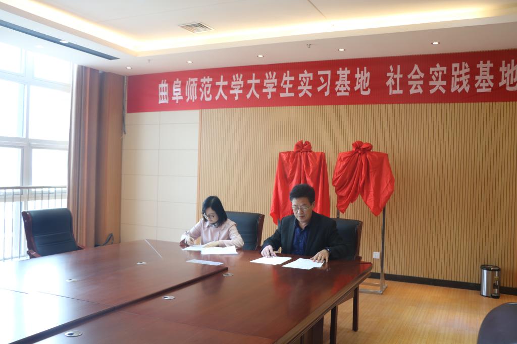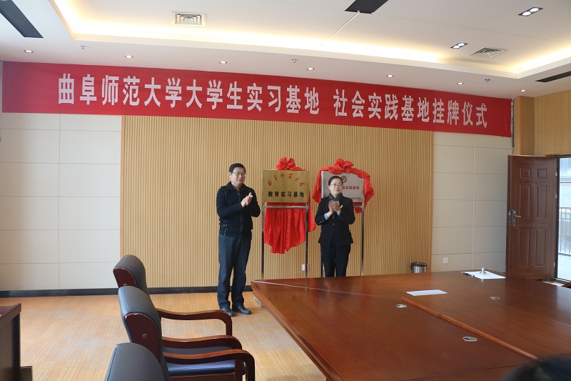 王作茂分别与张金启、曹静共同揭牌,马蓉分别与张金启、曹静签订实习基地协议,王旖旎分别与张金启、曹静签订社会实践基地协议。王作茂、马蓉为金乡县第一中学、金乡县第二中学的特聘教师发放聘书,聘请金乡县第一中学郝慧娟、田胜利、刘雪梅、仇芬芬、张玉琳(俄),金乡县第二中学殷春香、丁道文、孙春光、尚继占、张福红(俄)等10位老师为大学生实习“指导教师”。
