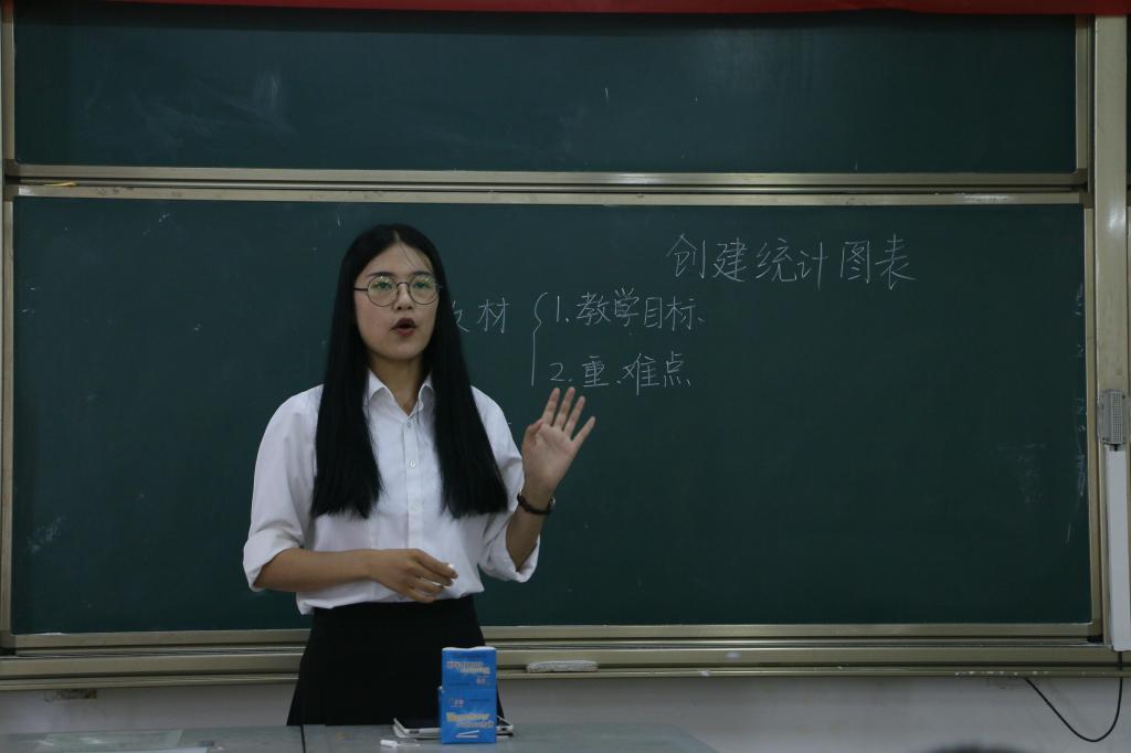 根据比赛规则,分为A、B两组,参赛人员需在规定时间内完成教学技能展示。本次教学技能展示重点考核了学生说课、板书、答辩等相关教学技能。参赛学生依据实习支教经验,分别从学情、教材、教法学法以及教学过程等方面进行了说课。他们将科学性、教育性、技术性、艺术性的教学原则贯穿到教学技能展示中,表达了关于教学创新的想法,充分展现了个人教学优势。