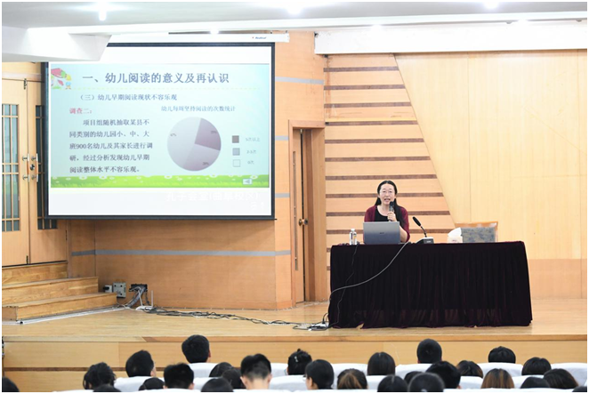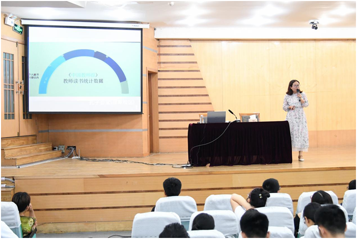 杨红霞老师报告的题目是《家道阅读,助教育发展之路》,她开展了农村小学家庭阅读教育模式的探索,由学校主导,先让家长带领孩子读起来,到有选择性读书,再到养成读书习惯,从而促进家庭阅读教育。