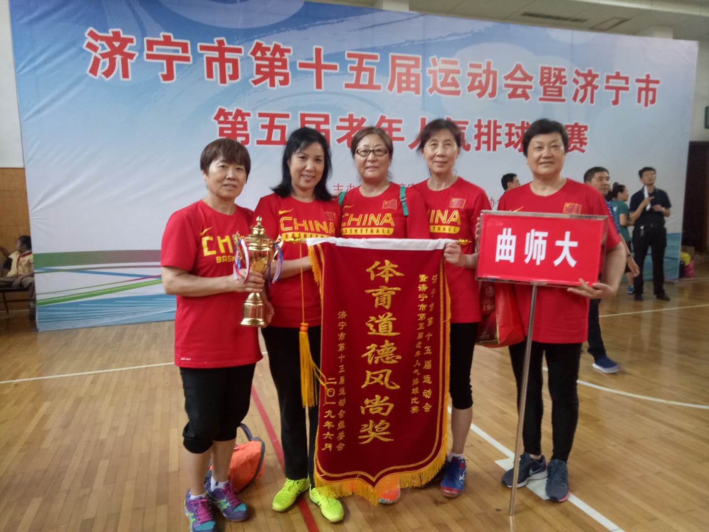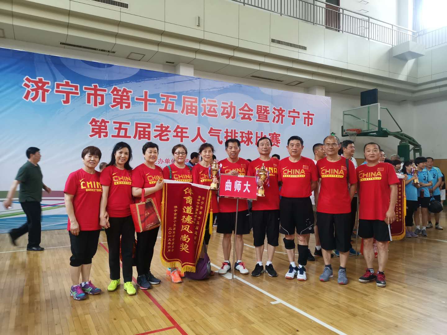 6月10日—12日,由济宁市体育局主办,济宁市老年人体育协会承办的济宁市第十五届运动会暨济宁市第五届老年人气排球比赛在济宁举行,我校老年气排球队经过激烈拼搏,最终获得气排球男子组第一、女子组第二的佳绩,并获得由组委会颁发的道德风尚奖。