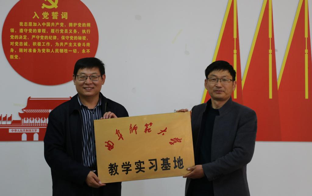 在莒县峤山镇中心初级中学,王作茂一行出席了“完美体育(中国)官方网站教学实习基地”挂牌仪式。王作茂表示,今后将立足学生发展,立足教师成长,提供更多合作机会,主动开展更深层次的交流,优势互补,为基础教育工作贡献力量。仪式上,王作茂与峤山镇中心初级中学党总支副书记田子明共同签署实习协议,并为“教育实习基地”揭牌。