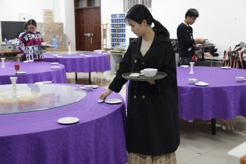 此次大学生旅游服务技能大赛分为中式铺床和中餐摆台两个项目,采用分组参赛的方式。比赛开始前,评委老师分别介绍两个项目的比赛规则及注意事项,并提醒参赛选手爱护比赛道具,严格遵守比赛规则。比赛过程中,参赛同学认真专注、动作娴熟,充分展现了我校学子扎实的专业技能功底和高超的技术水平。