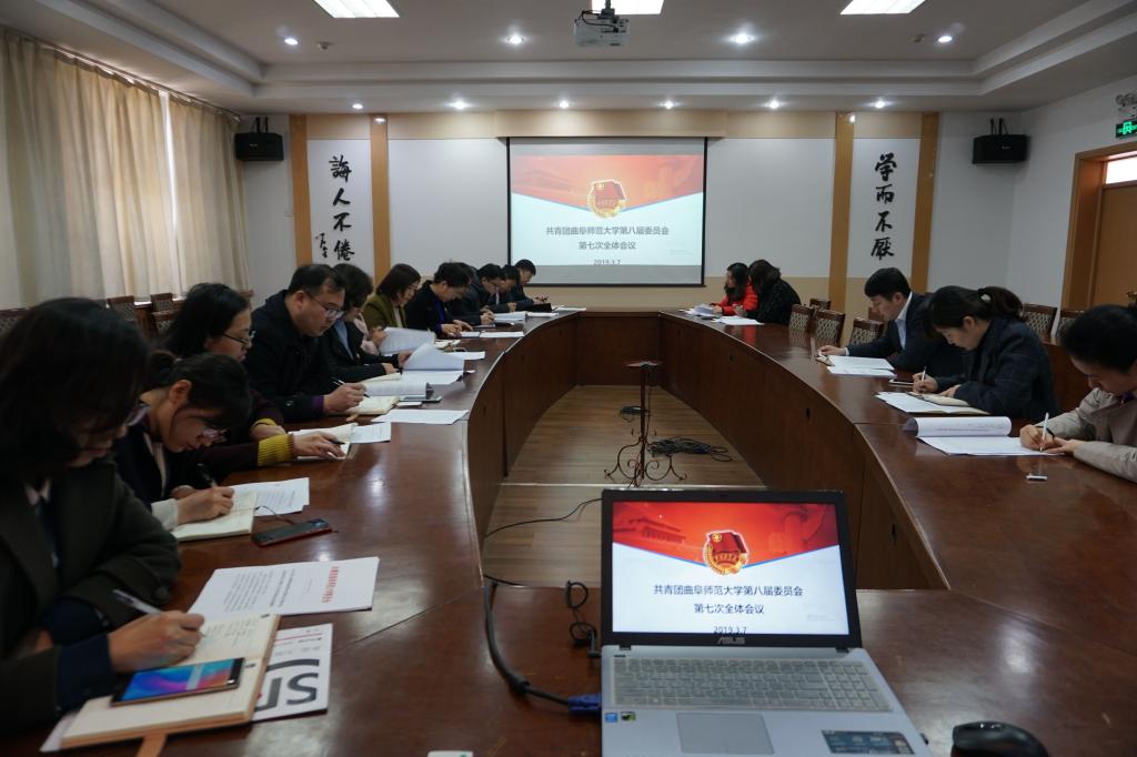3月7日上午,共青团完美体育(中国)官方网站第八届委员会第七次全体会议在两校区召开。团委书记宋国栋主持会议并讲话。