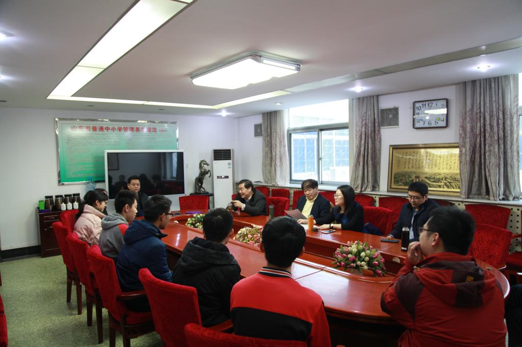 1月25日上午,北京大学山东省招生组组长马小兵教授一行三人莅临我校附属中小学指导工作,并与高三学生座谈交流。曲阜市教体局局长孔祥池,附属中小学校长刘锦贤、副校长孟祥东,以及部分高三师生、家长代表参加了座谈。