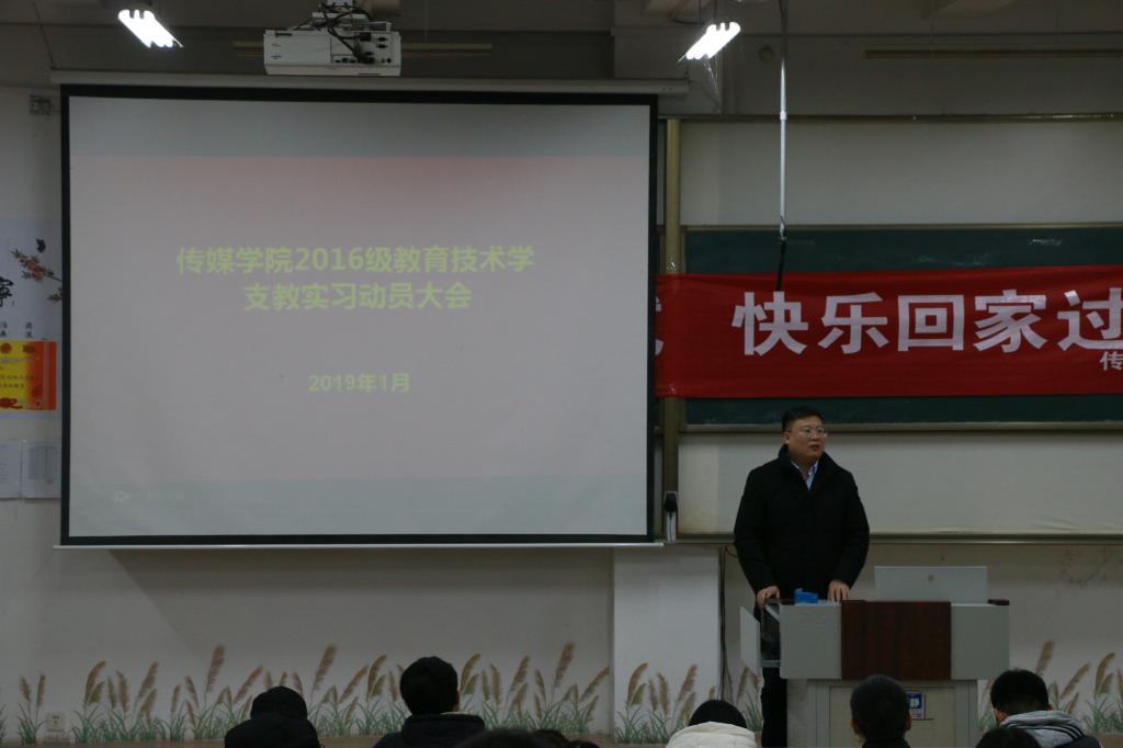 为贯彻落实《完美体育(中国)官方网站师范生实习支教工作管理办法》相关规定,保障实习工作顺利开展,传媒学院于1月17日召开2016级教育技术学专业实习支教动员大会。传媒学院党委书记李兴保、党委副书记徐正伟、副院长赵可云、团委书记张守荣及全体实习指导老师出席,2016级教育技术学专业全体学生参加大会。