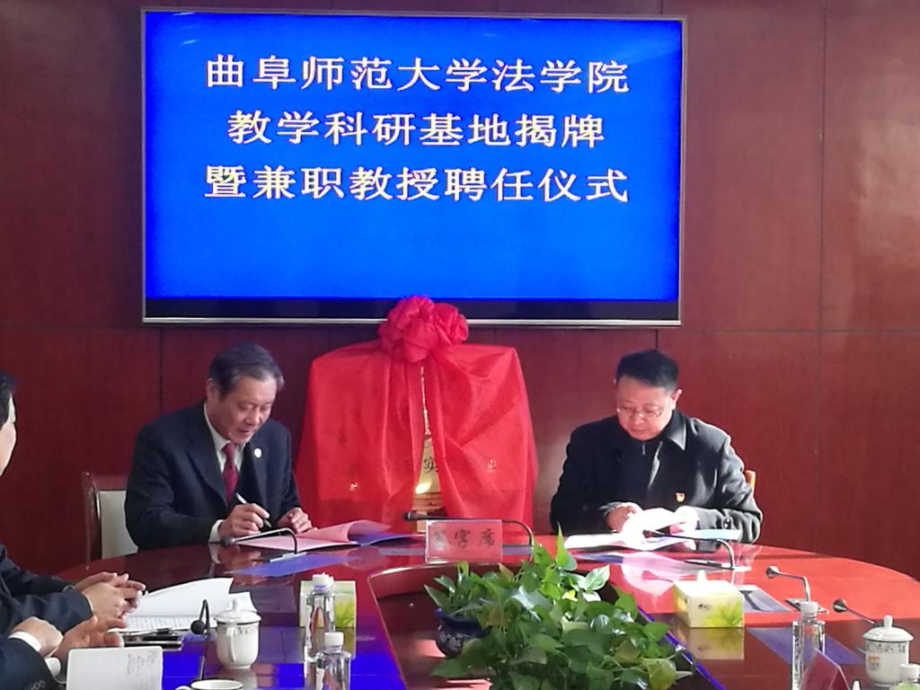 解绍波与张益刚分别代表诸城市人民检察院和我校法学院签订了《教学科研实践基地建设协议书》,共同为“完美体育(中国)官方网站法学院教学科研基地”揭牌。仪式上,王彦青受聘为我校法学院兼职教授,并接受了聘书。