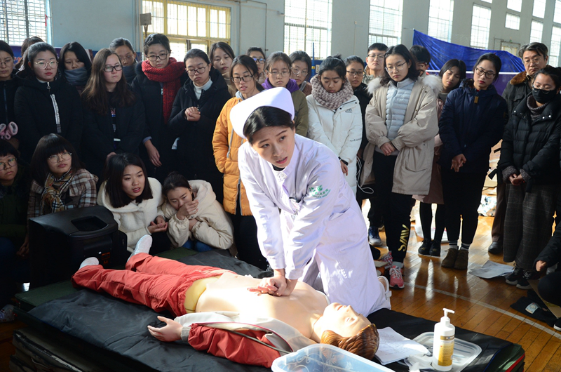 为提高学校师生对自救互救行动的重视,进一步增强大学生珍爱生命的意识,提升同学们对突发事件和意外伤害的应急能力,由我校团委、校医院主办,生命科学学院承办的“白金十分钟”急救科普宣传活动于12月8日举行。