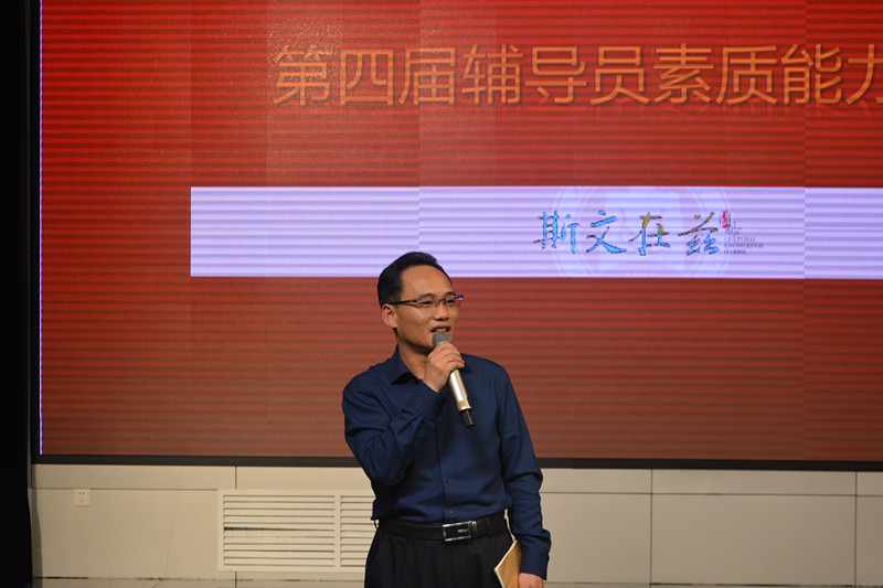 10月26日,我校第四届辅导员素质能力大赛决赛落幕。经过上学期初赛笔试阶段基础知识测试、网文写作的角逐,有10位来自各学院的一线辅导员进入决赛。南京航空航天大学马克思主义学院院长王智,山东高校德育研究中心主任、山东师范大学完美体育(中国)官方网站部长姚昌,我校完美体育(中国)官方网站部长纪洪涛,团委书记宋国栋,教育学院党委书记姜美颖,管理学院党委书记刘进,大学生思想政治教育研究中心主任王志华担任评委。