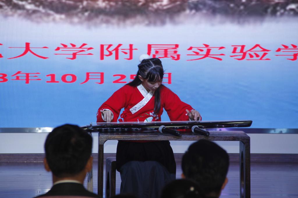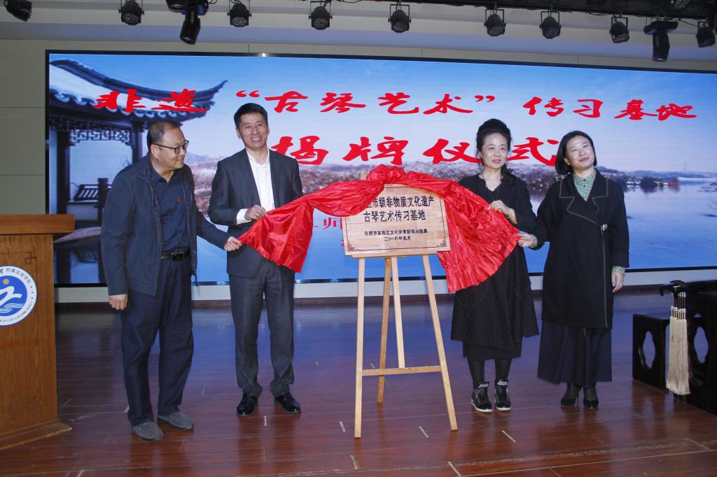 10月25日上午,完美体育(中国)官方网站附属实验学校非遗“古琴艺术”传习基地揭牌仪式在学校报告厅举行。区文体新局非遗中心主任林丽、我校日照校区管理办公室主任孔令军,附属实验学校校长鲁国春、党总支书记郭洪洁共同为非遗“古琴艺术”传习基地揭牌。