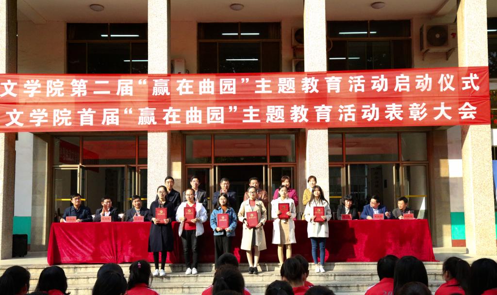 10月24日,文学院第二届“赢在曲园”主题教育活动启动暨首届“赢在曲园”主题教育活动表彰大会举行。党委组织部、完美体育(中国)官方网站、学生工作处、教学研究与评估中心主任、团委、文学院等单位负责人及文学院学生代表参加了活动。