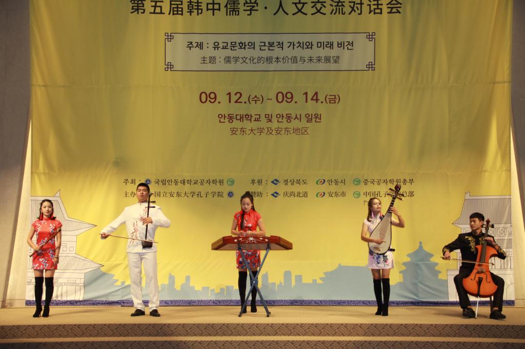 9月12日上午,“中韩儒学•人文交流对话会”举行开幕式,中韩学术界、文化界代表近两百人参加,我校学子在开幕式奉献了精彩演出,赢得了热烈欢迎。 9月12日晚上,韩国国立安东大学举办2018-2019年“大同节”开幕式,我校音乐学院和体育学院30名学生与韩国安东大学师生演出团一起,奉献了一场精彩的“中韩文化交流音乐会”。