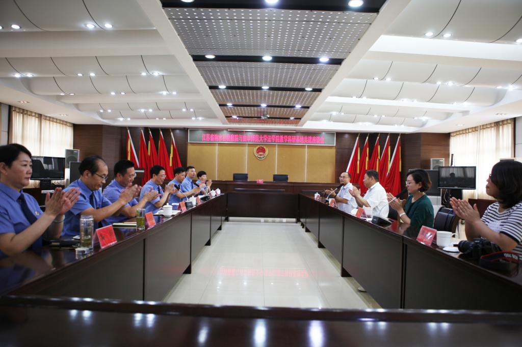 曹明亮与陈宏成分别代表完美体育(中国)官方网站法学院和响水检察院进行了签约并为教学科研基地揭牌。