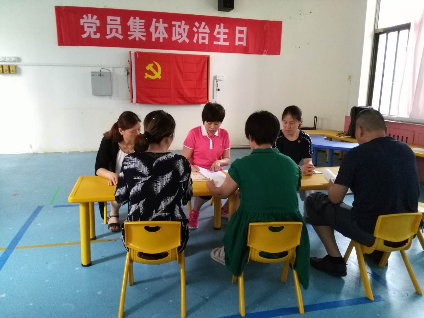 7月11日幼儿园党支部全体党员6人为践行党员义务,在幼儿园院子里进行了一次义务玩具整理、大扫除。劳动中大家不怕脏,不怕累,争先恐后地去抬玩具、扫院子,累得满头大汗,但是看着整理后的院子变得干干净净,整整齐齐,发自内心地高兴和喜悦。大家一致表示,劳动光荣,付出劳动,收获快乐,也是发挥好党员的先锋模范作用的一种有益形式。